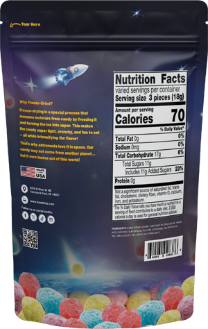 We freeze-dry the candy to remove moisture, resulting in a light, crunchy texture while intensifying the original flavors