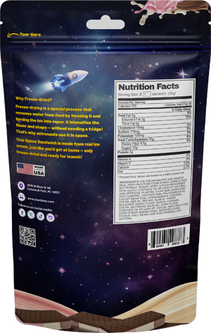 Discover the ultimate freeze-dried ice cream adventure with Neapolitan Space Sandwich, a perfect blend of three classic flavors! Indulge in creamy vanilla, rich chocolate, and fruity strawberry ice cream, all nestled between two chocolate wafers and transformed by freeze-drying into a light, crunchy snack. Whether you're hiking, camping, or stargazing, this portable treat combines nostalgic ice cream flavors with a futuristic twist. Neapolitan freeze-dried ice cream sandwiches are a must-have for anyone craving variety and fun in every bite. Blast off into deliciousness with this crowd-pleasing, space-inspired snack!